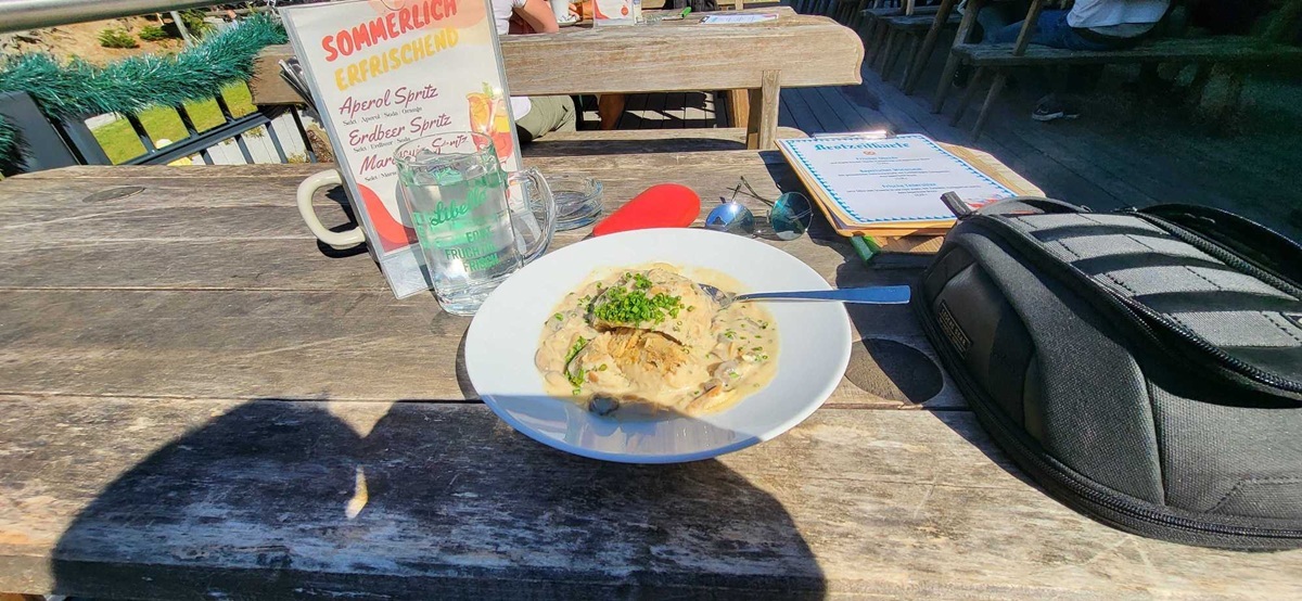 Da es auch dort hervorragendes Essen gibt, bestellte ich mir Rahmschwammerl mit Semmelknödel. Die mundeten richtig gut und standen dem, was ich in Furth gegessen hätte, in nichts nach.