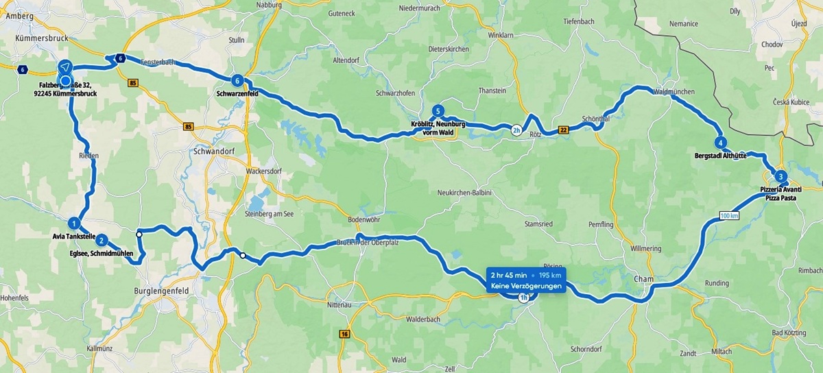 Der Plan war eigentlich, den Gasthof "Zum Bay" in Furth im Wald einen Besuch abzustatten, nachdem dies bei der letzten Ausfahrt nicht geklappt hat, weil Betriebsurlaub. Leider mussten wir auch diesmal feststellen, das der Bay schon wieder Urlaub macht, was allerdings auf deren Homepage, die ich vor der Abfahrt noch besucht hatte, nicht hervorging. Die angegebene Öffnungszeit von 11:00-14:00 Uhr war leider nicht der Fall, weshalb wir uns dann in der Pizzeria Avanti ein Mittagessen gönnten.