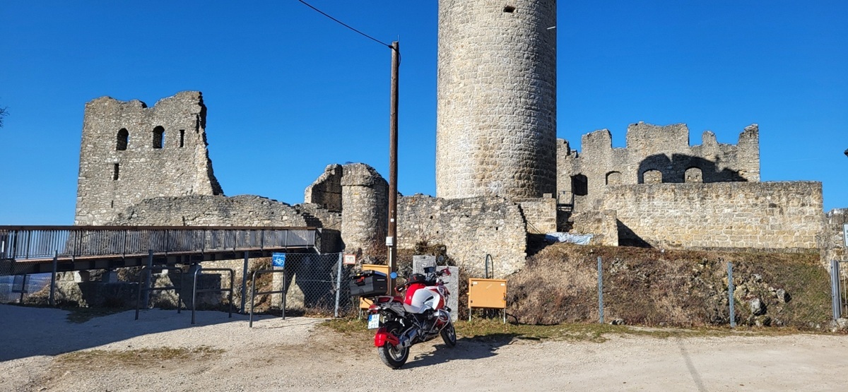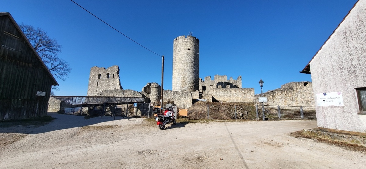 Und weil der Donnerstag 05.03. auch so schön sonnig war, das Moped gewaschen werden wollte, begab ich mich gleich nochmal auf eine kleine Runde zur Burgruine Wolfstein bei Neumarkt.